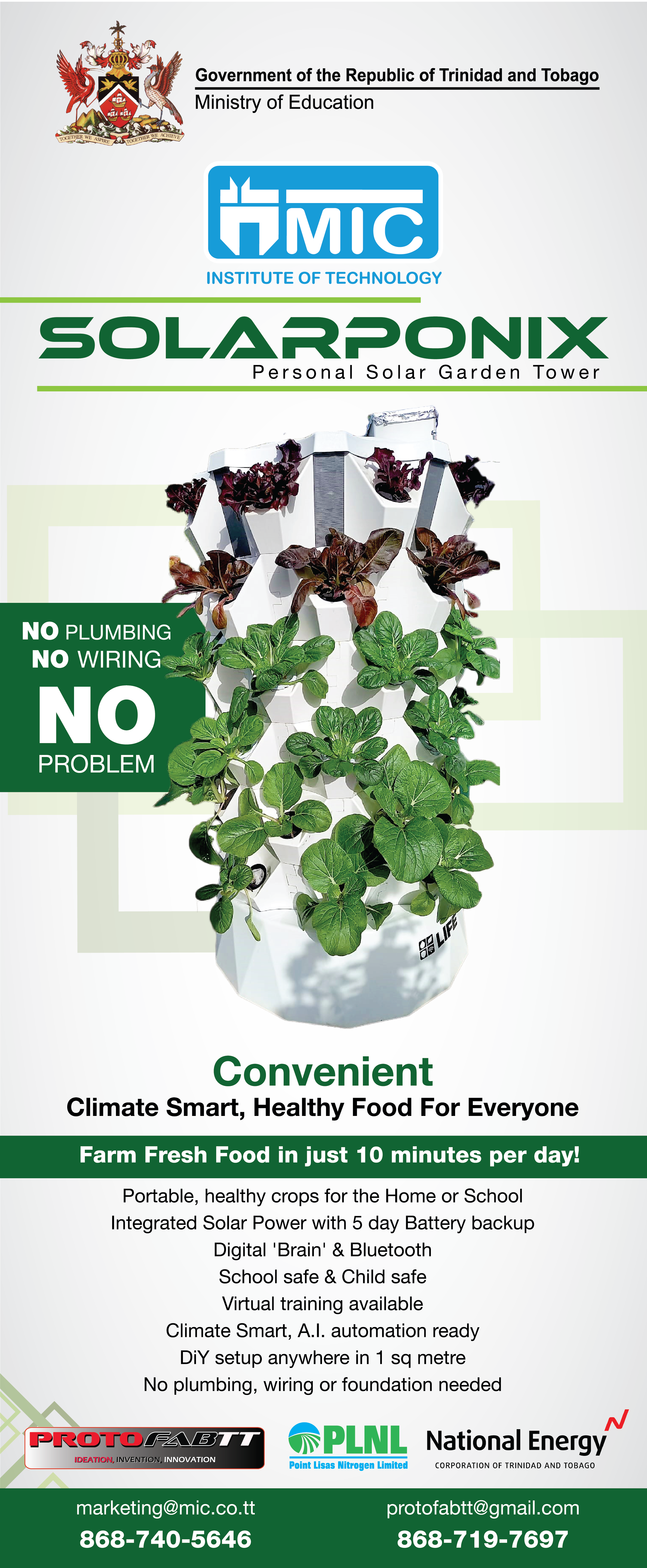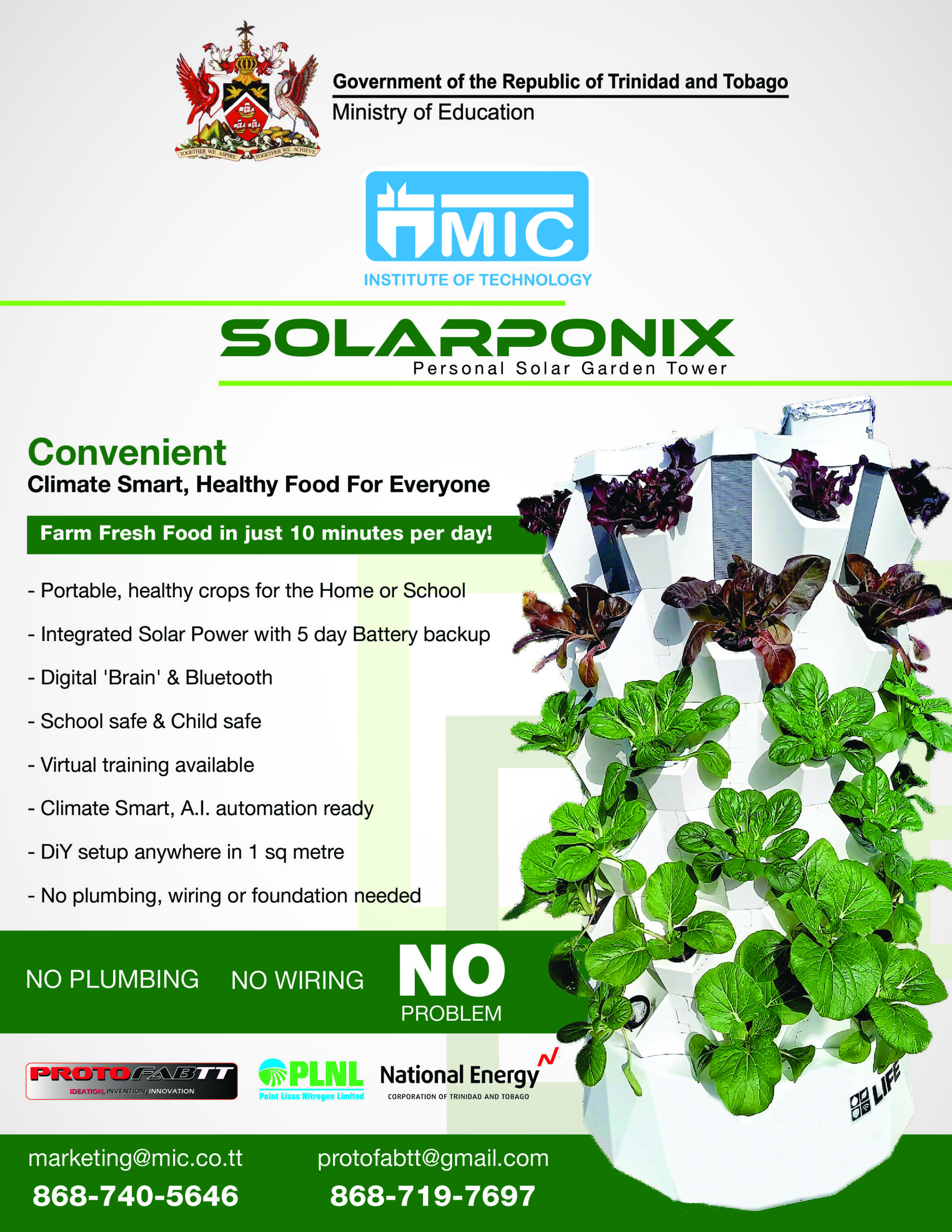 In March 2018, MIC-IT and ProtoFabTT joined forces to create the remarkable Green-Tech Facility, a hub for the revolutionary Battery Regeneration Project [IonHammer]. Through this collaboration, a range of groundbreaking and innovative products has been developed, including the award-winning SolarPoniX, Octoport Charger, and Rotating Vertical Farming Unit. All of these products were meticulously engineered with a strong focus on environmental sustainability, paving the way for a more sustainable future. With Ancel Bhagwandeen, a visionary leader at the helm of ProtoFabTT, the company is steadfastly dedicated to eco-friendliness and global impact.