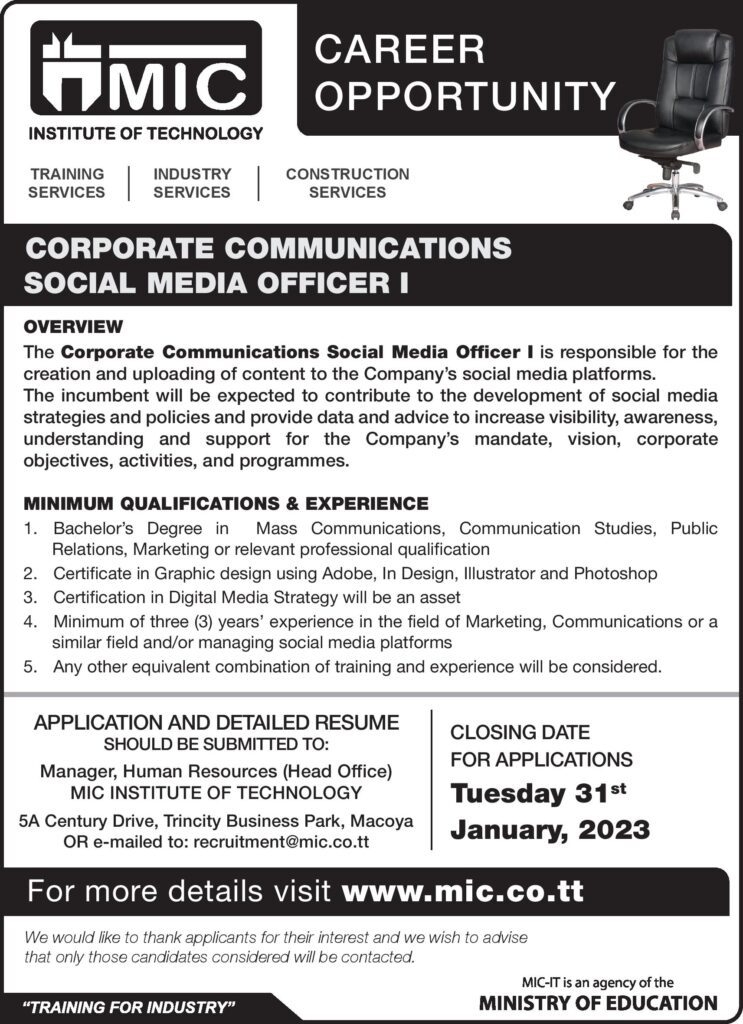 Published Date: Thursday, 5 January 2023 | Closing Date: Tuesday, 31 January 2023