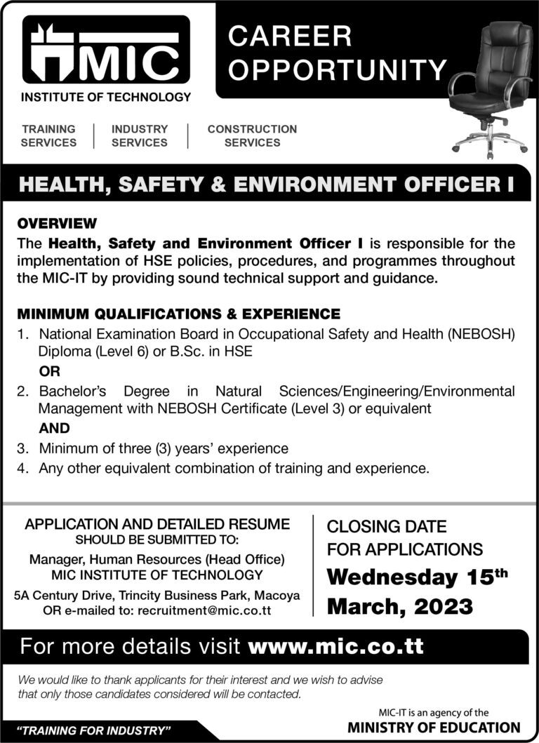 Published Date: Thursday, 23 February 2023 | Closing Date: Wednesday, 15 March 2023