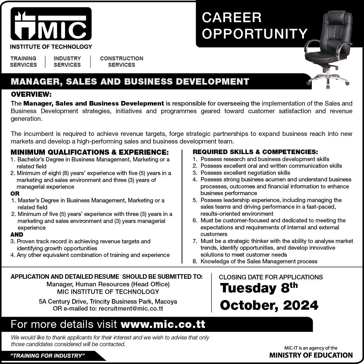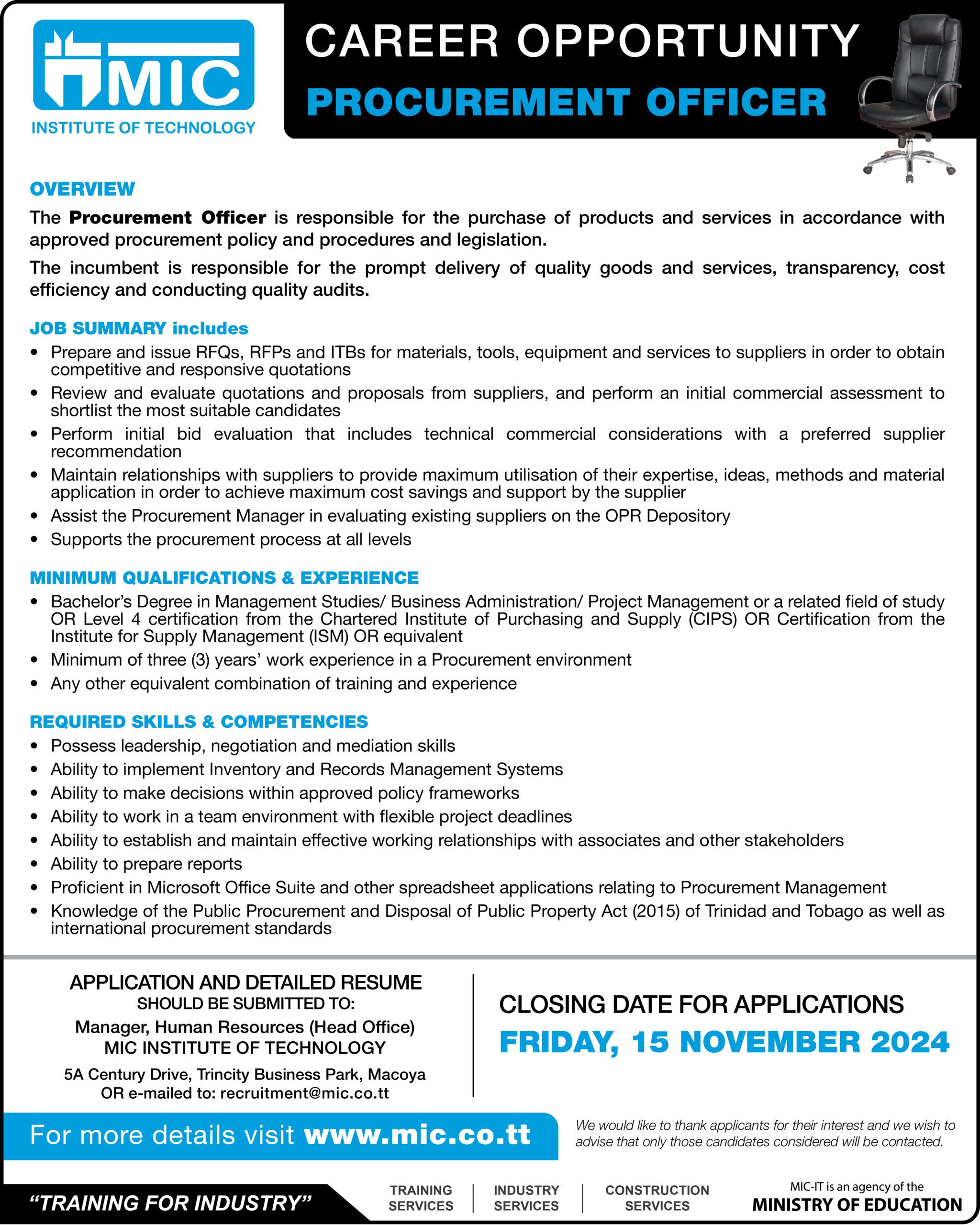 Published Date: Wednesday, 23 October 2024 | Closing Date: Friday, 15 November 2024