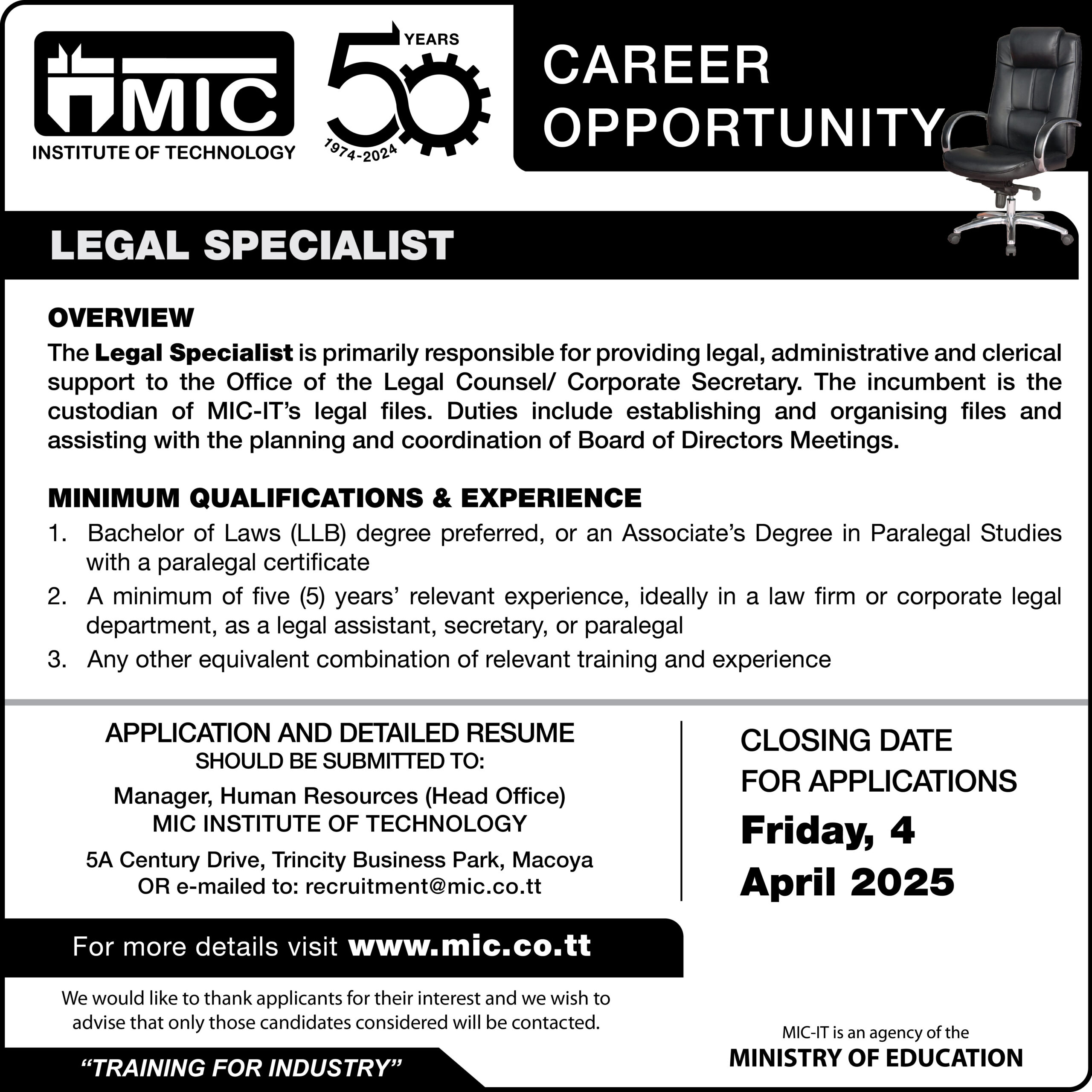 Published Date: Wednesday, 19 March 2025 | Closing Date: Friday, 4 April 2025