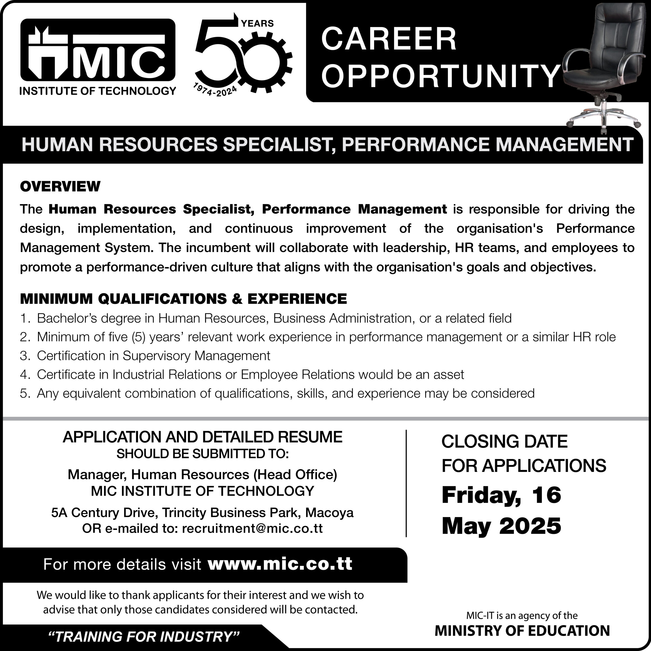 Published Date: Tuesday, 30 April 2025 | Closing Date: Friday, 16 May 2025